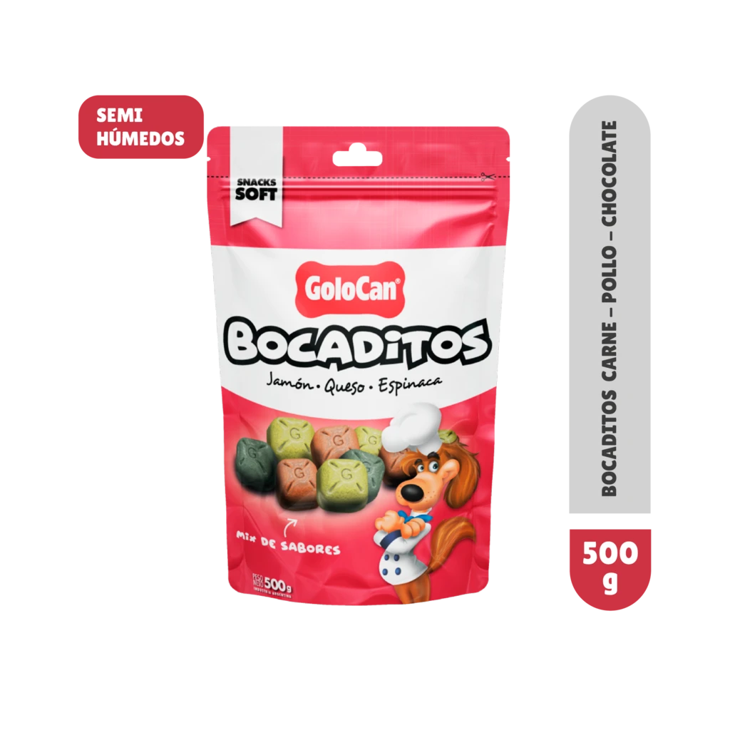 Nuestros bocaditos son snacks blandos y semihúmedos que deleitarán a tu mascota con su variedad de sabores. Cada bocadito está formulado para ofrecer una textura irresistible y fácil de masticar, ideal para perros de todas las edades. Perfectos como premio o recompensa diaria, estos snacks se hornean con ingredientes de calidad que cuidan la salud de tu mascota.